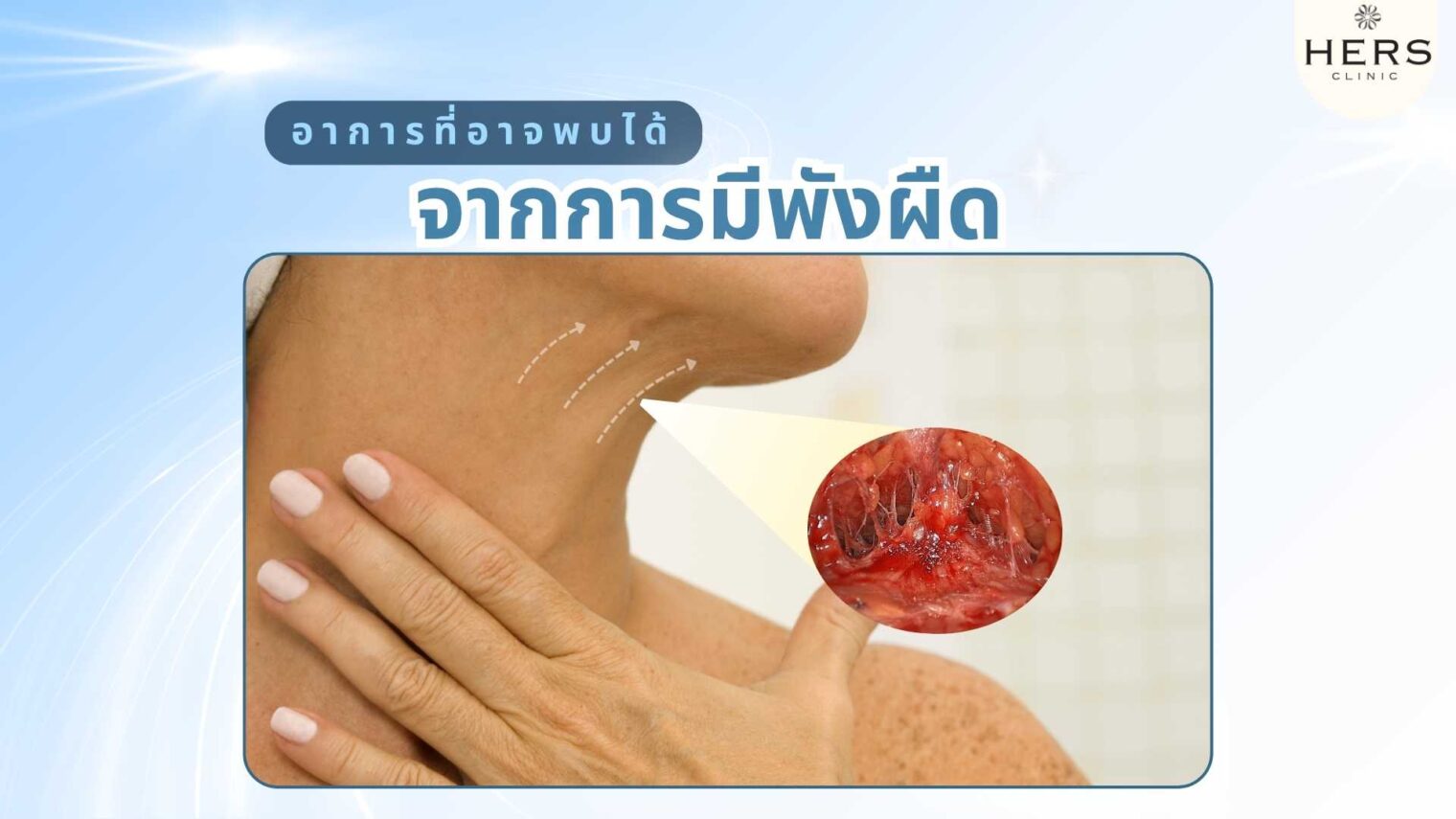 พังผืดจากการดูดเหนียง ร้อยไหม หรือดึงหน้า หรือกระทั่งการฉีดสารเติมเต็มบ่อยครั้งจนเกินไป เป็นผลข้างเคียงที่พบได้ โดยเฉพาะเมื่อมีการอักเสบหรือสมานแผลไม่สมดุล อาการที่พบบ่อยคือความตึง ก้อนแข็ง ผิวรั้งผิดปกติ การรักษาเน้นการคลายสลายพังผืด ลดการอักเสบ และฟื้นฟูความยืดหยุ่นของผิว แนะนำปรึกษาแพทย์ผู้เชี่ยวชาญเพื่อพิจราณาขั้นตอนรักษาให้เกิดผลลัพธ์ดีที่สุด